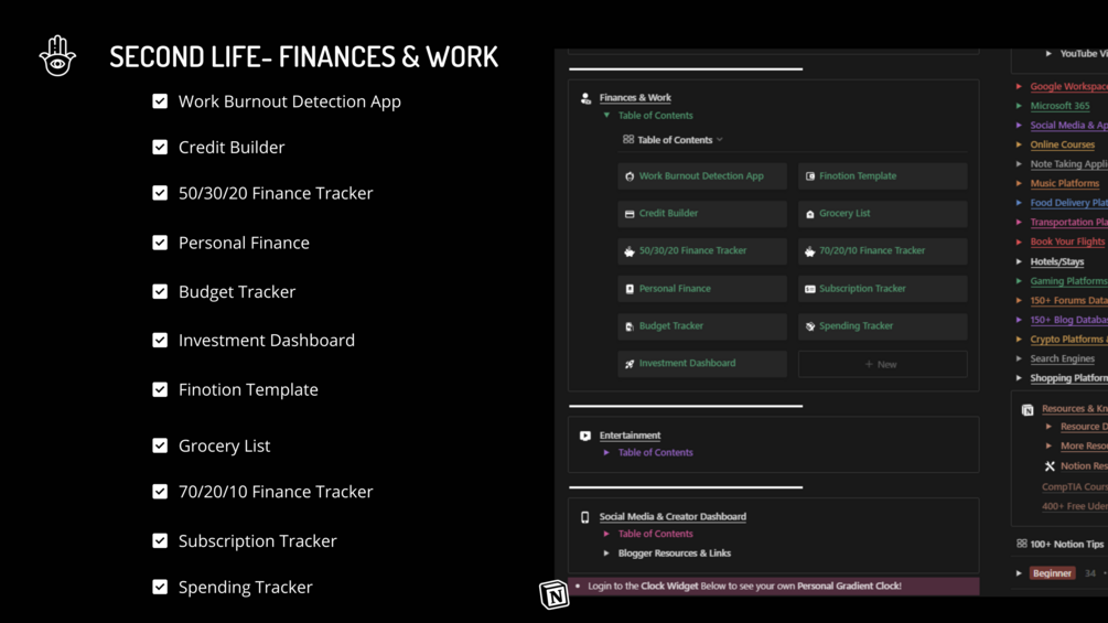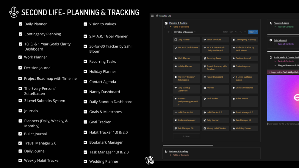 Looking to maximize your productivity and plan out your life effectively? Look no further than Second Life, the ultimate template on Notion! With everything you need at your fingertips, Second Life offers unparalleled organization and planning capabilities that will help you achieve your goals and thrive in all aspects of your life.